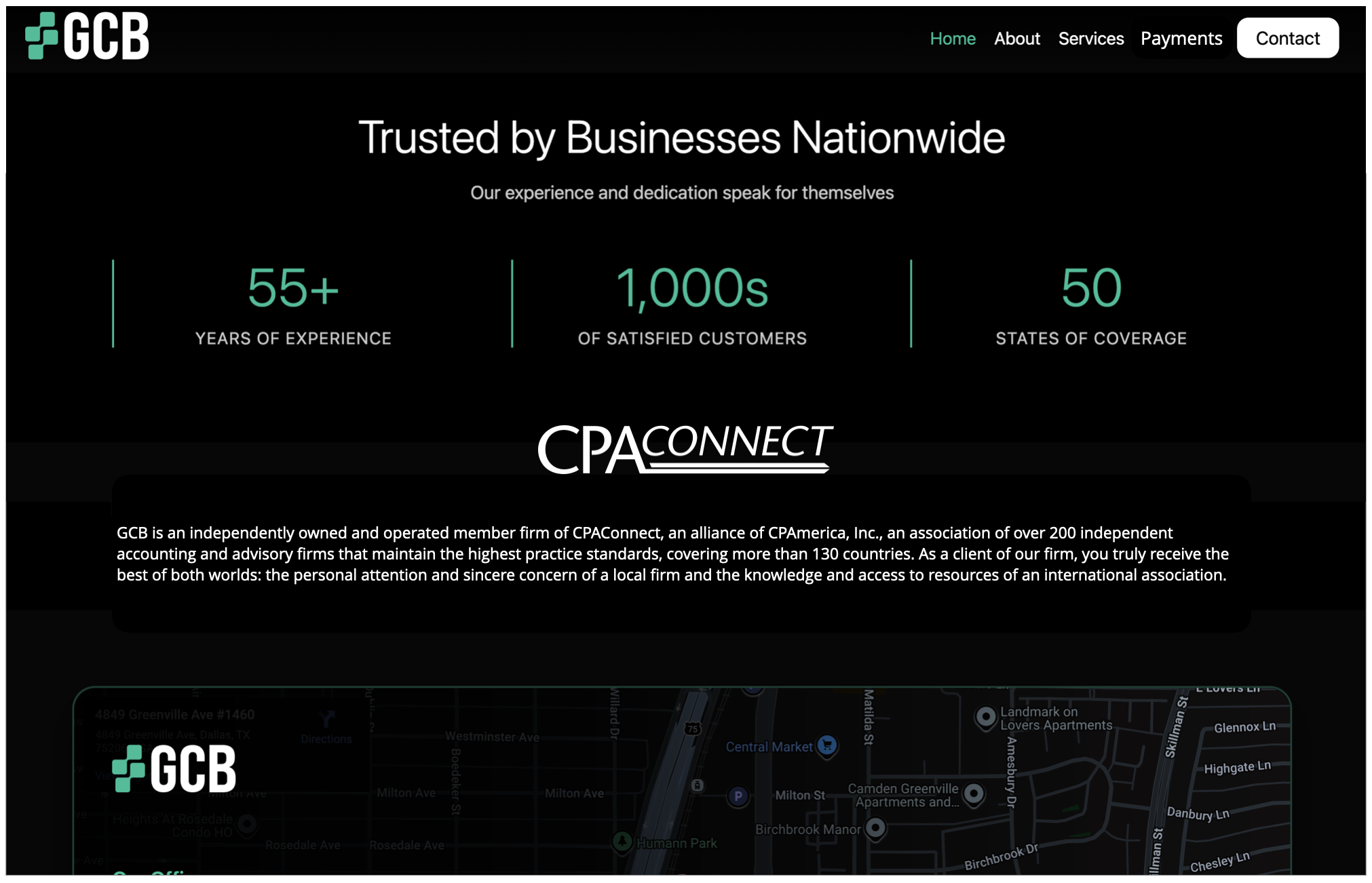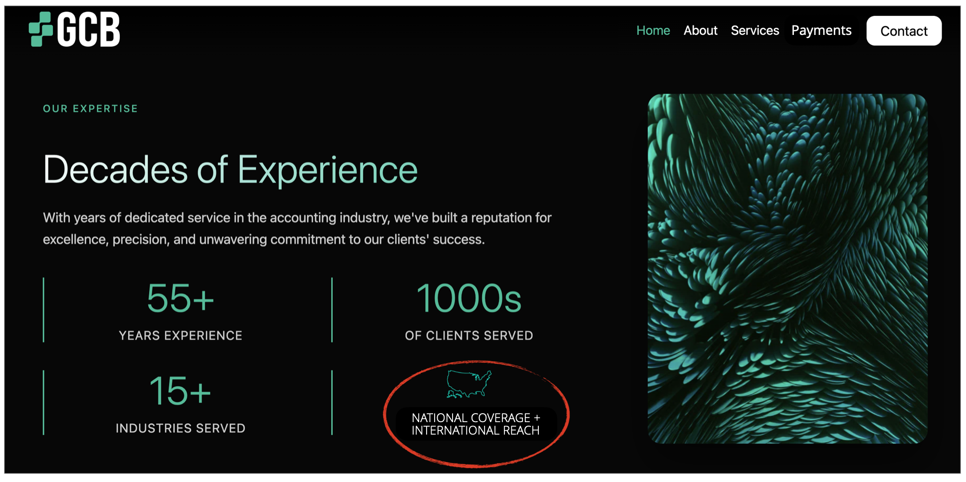 There are ways to make note of the benefit in small ways throughout. It can flow into the current design organically near the base of the Home, About, and Services pages as seen below - above the office location/map.